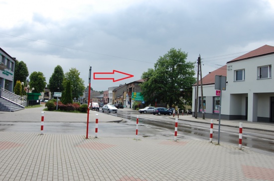 Wejście z chodnika, poziom 0, usytuowanie przy drodze wojewódzkiej 793, w centrum pawilonu handlowego